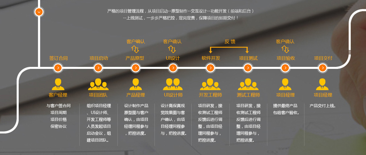 強(qiáng)大的設(shè)計(jì)及技術(shù)團(tuán)隊(duì) · 擁有成功的合作經(jīng)驗(yàn) · 標(biāo)準(zhǔn)化作業(yè)體系 · 一對(duì)一百分百服務(wù) · 獨(dú)享的顧問式貼身服務(wù)
